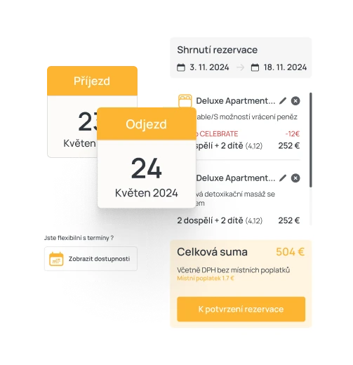 Nedílnou součástí Bookolo Booking Engine je dynamický kalendář, který nabízí přehled dostupných termínů, pokojů a cen.