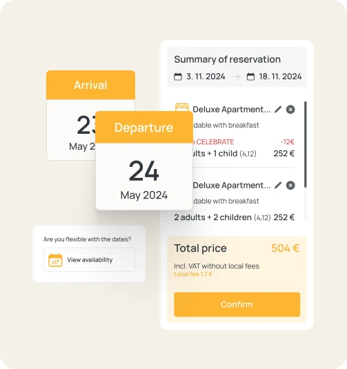 Bookolo Booking Engine is a modern and intuitive booking engine that offers a complex online solution for accommodation facilities of any type and size. At Bookolo, we focus on increasing direct sales, which is why Booking Engine has a wide range of tools to support it.