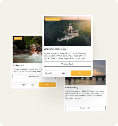 Bookolo Voucher Shop allows you to sell hotel services in the form of vouchers that you can offer at open and fixed prices or for hotel packages. Voucher Shop can also be used as a standalone module.